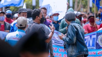 Jombang – Buruh di Kabupaten Jombang menyuarakan tuntutannya kepada para Wakil Rakyat untuk kenaikan Upah Minimum Kabupaten (UMK) tahun 2022 sebesar 10%. Hal ini di lakukan karena buruh tak ditemui saat lakukan audiensi di ruang paripurna DPRD.