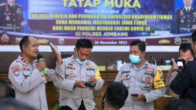 Jombang, Guna mewujudkan program prioritas Kapolri dibidang peningkatan pelayanan publik, Direktorat Binmas Polda Jatim melaksanakan kegiatan Tatap muka dalam rangka evaluasi kinerja dan peningkatan kapasitas Bhabinkamtibmas guna mengawal masyarakat Jawa Timur dari masa Pandemi menuju Endemi Covid 19 bertempat di Graha Bhakti Bhayangkara Polres Jombang, Jumat, (26/11/2021).