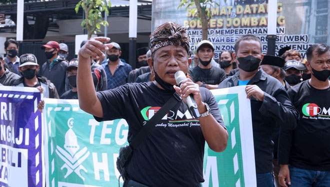 Sementara itu, Ketua DPRD Jombang, Mas’ud Zuremi, yang sempat menyambut para demonstran di depan gedung DPRD, mendukung apa yang diinginkan oleh FRMJ dalam penegakan hukum sebenar-benarnya.