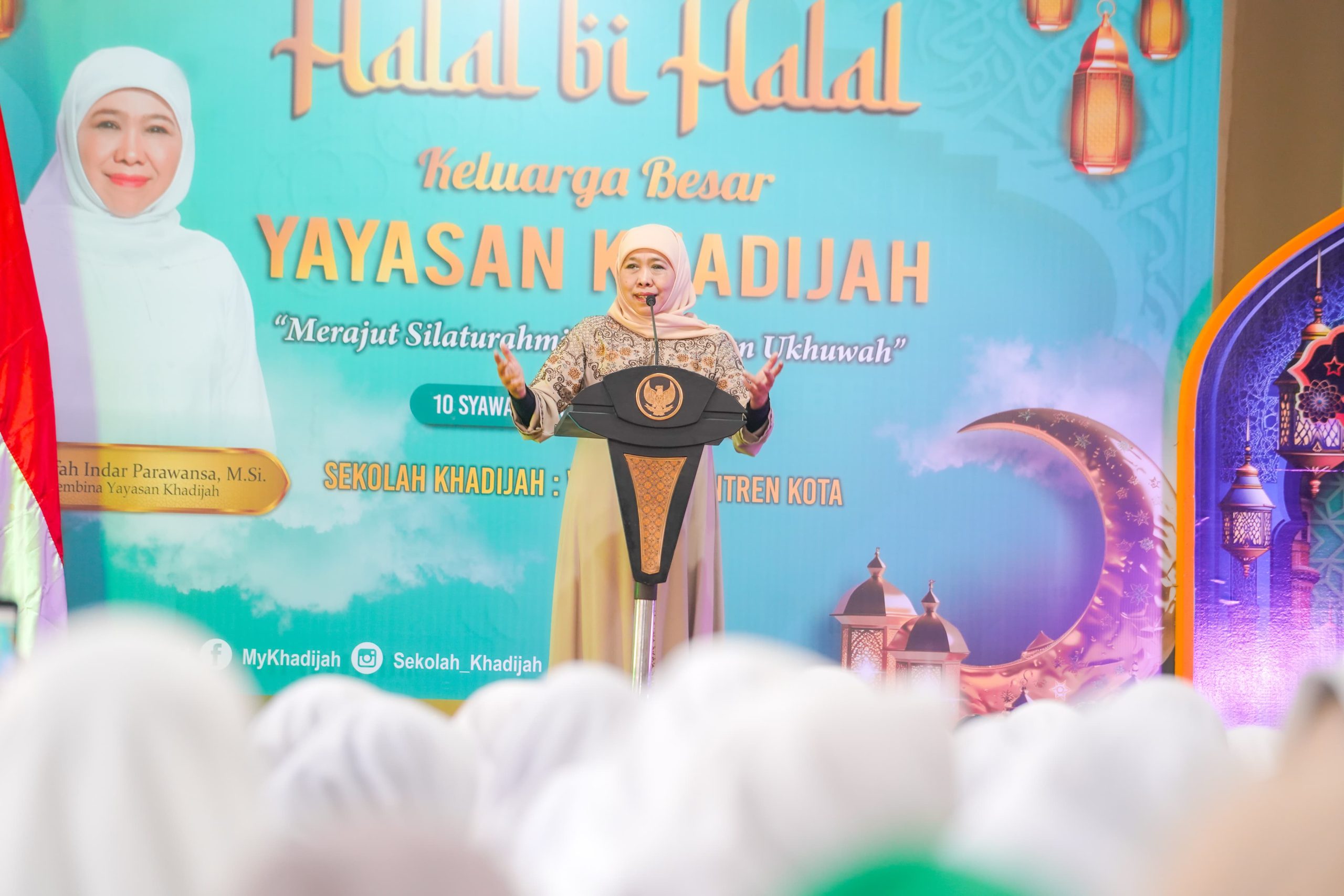 SURABAYA, 9 APRIL 2025 Gubernur Jawa Timur Khofifah Indar Parawansa menyatu dalam hangatnya Halal Bihalal Keluarga Besar Yayasan Taman Pendidikan Khadijah Tahun 1446 H di Aula Yayasan Khadijah, Jalan A. Yani Nomor 2-4 Surabaya pada Rabu (9/3) pagi.